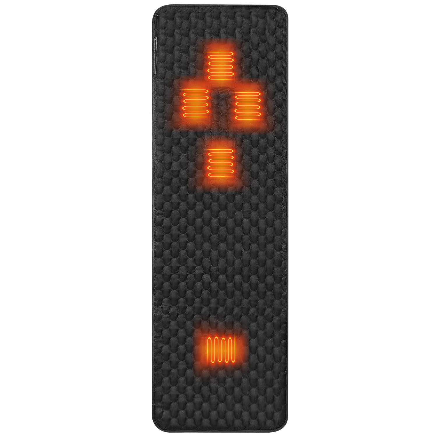 Measuring 76.77x24.01in (Lx W), our heated sleeping bag liner adopted 5pcs premium heating wires achieves quickly and evenly heating and keep your body warm and comfortable in cold damp night after a tiring day of outdoor exploration. After connected to 10000mAh power bank(Not Included), the heating pad which comes with 3 temperature levels can provide you up to 9hours continuous warmth in the low level. Soft and skin-friendly polyester surface and anti-slip bottom support both machine and hand washing, easy to care. Included carrying bag make this electric heated sleeping pad a great companion for both indoor and outdoor use in this chilling winter.